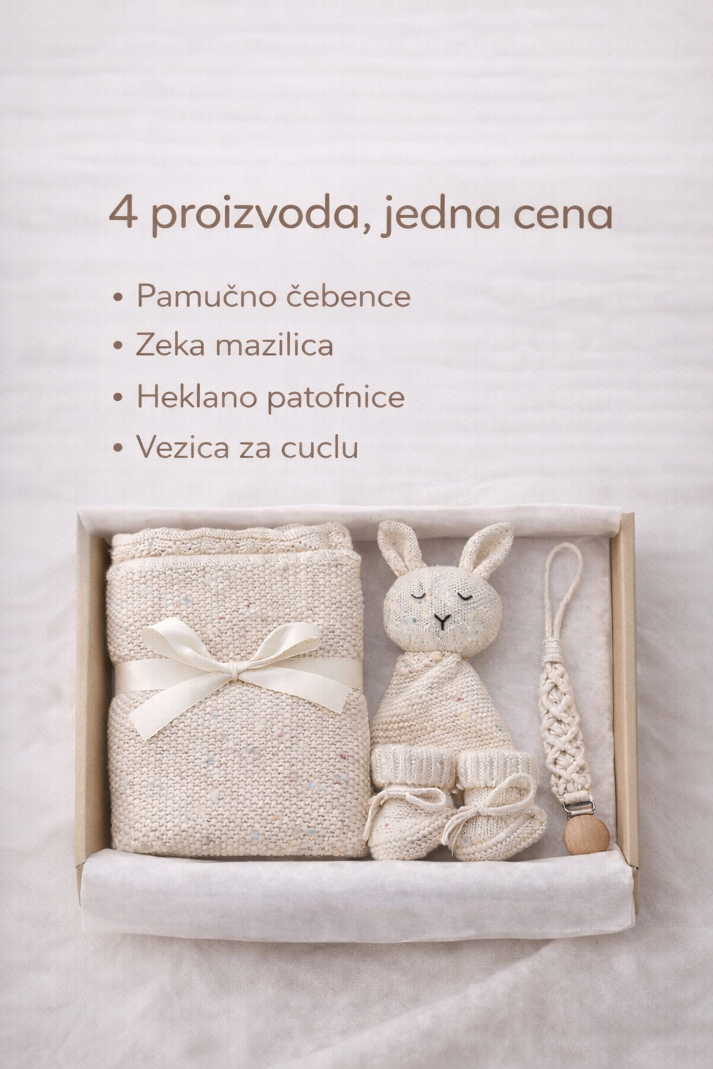 • Ćebence od 100% pamuka – mekano, prozračno i nežno prema osetljivoj bebinoj koži.